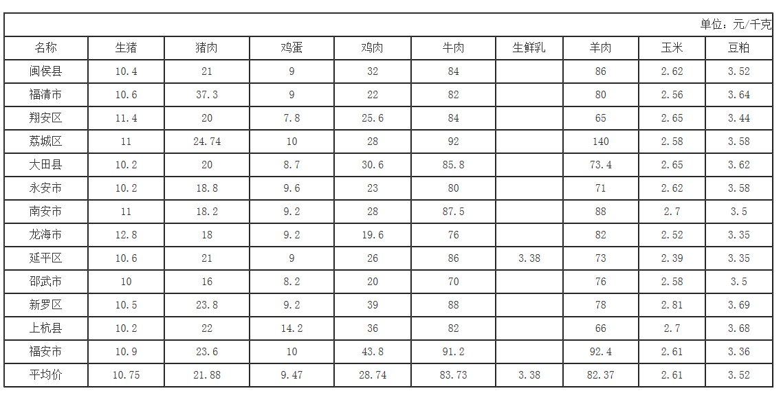福建省2026年第13周畜产品及饲料集市价格周报