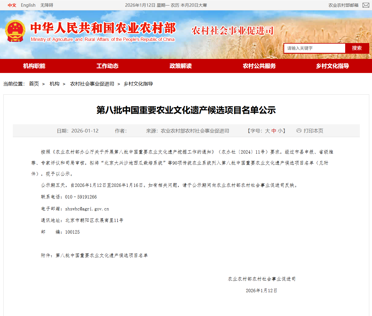 农业农村部农村社会事业促进司发布