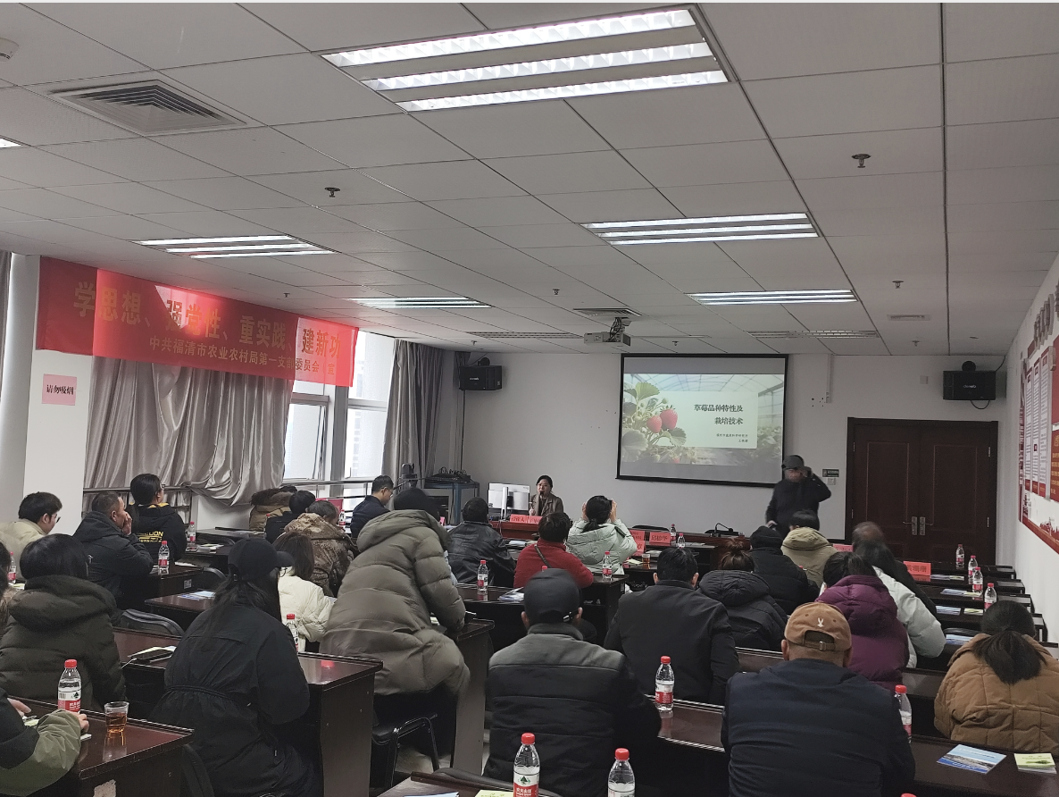 培训会上,福建农林大学园艺学院林义章教授、福州市菜科所王艳娜高级农艺师带来“芹菜、西洋芹菜高产优质栽培技术”及“草莓品种特性及栽培技术”的授课。两位专家以系统化的知识框架,围绕优质种苗筛选、标准化田间管理、高效栽培模式创新以及病虫害绿色综合防控等关键环节,展开了全面而深入的专题讲解,并将最新研究成果与实践经验相结合,为培训人员带来了一场前沿技术与实战应用交融的农业知识盛宴。 本次培训紧扣芹菜、草莓生产全链条,破解芹菜、草莓农药残留治理难题,致力于推广全流程规范种植与绿色防控技术。通过将科学用药与高效栽培手段直输田间地头,切实提升产业能力,为芹菜、草莓产业提质增效与质量安全构建坚实保障。福州市农业农村局四级调研员邱榕华,福清市、闽侯县农业农村局质监分管领导,市县质监、执法、植保、经作相关同志,部分乡镇农安监管员、协管员及芹菜、草莓种植户约90人参加培训。
