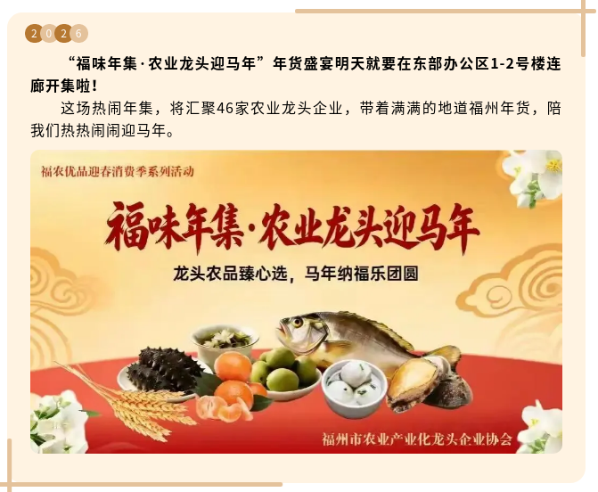 本次活动由福州市农业产业化龙头企业协会主办,包括9家国家级、28家省级(含1家台企)、9家市级企业在内的46家农业龙头企业,为大家精心准备了果蔬、食用菌、茶叶、水产品等新鲜农产好物,从日常餐桌必备的米面粮油,到节日特色的预制菜、滋补品,一站式备齐地道福味年货,满足阖家自用与走亲访友需求,用匠心好货营造浓浓年味。