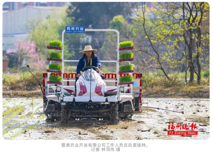 开春以来,福州新区(长乐区)春耕生产全面拉开序幕。走进古槐镇龙田村雪美农业开发有限公司数字化育秧中心,自动化育秧流水线全速运转。刚催芽完成的优质稻种,与营养基质精准混合,均匀铺入秧盘;工人们手脚麻利地将一盘盘秧苗整齐码放好,转运至智能化温室大棚,开启精细化培育。智能控温大棚内绿意初萌,嫩白的稻芽破土而出,在适宜的温湿度环境中茁壮成长,处处涌动着生机与希望。