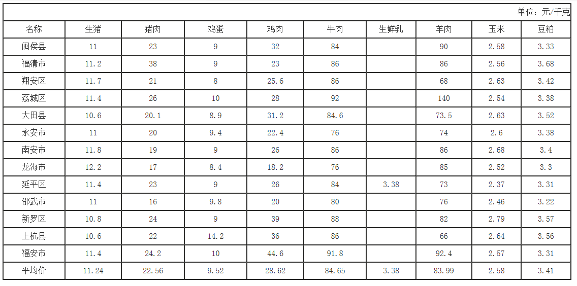福建省2026年第11周畜产品及饲料集市价格周报