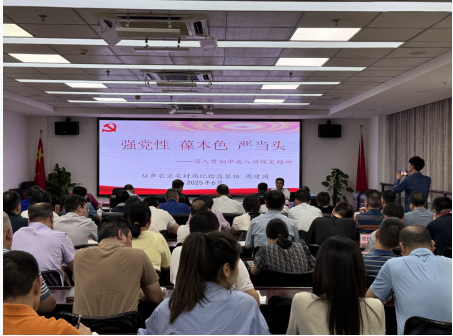 为推动深入贯彻中央八项规定精神学习教育走深走实、入脑入心、见行见效,推进作风建设常态化长效化,2025年6月27日,福州市农业农村局开展深入贯彻中央八项规定精神学习教育专题党课。局领导班子成员、四级调研员、机关各处室及直属单位负责人、各支部党员干部参会。