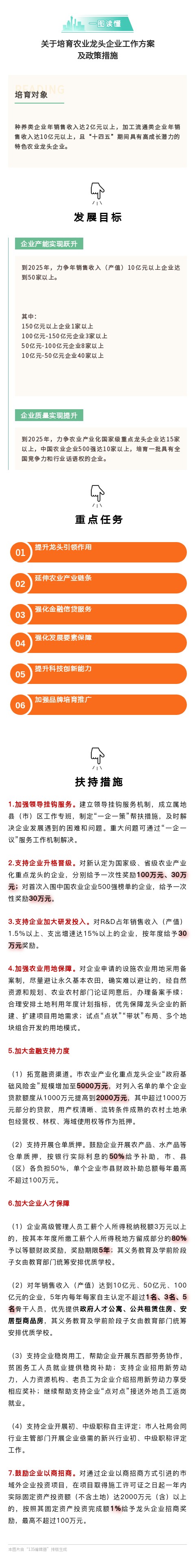 一图读懂:关于培育农业龙头企业工作方案及政策措施